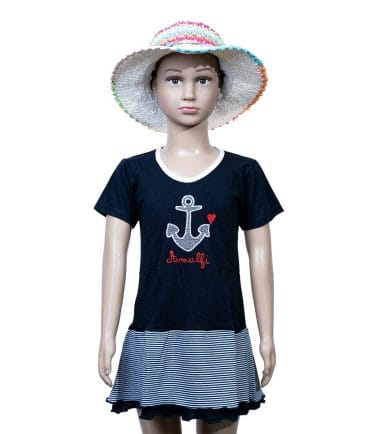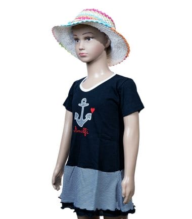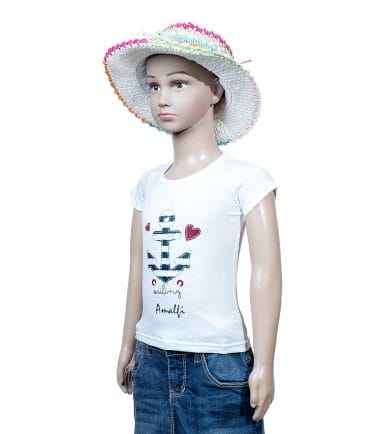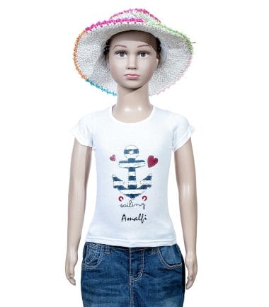 T-Shirt bimba con ancoretta a righe e cuoricini