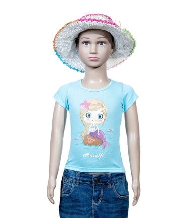 T-Shirt bimba blu pesci colorati