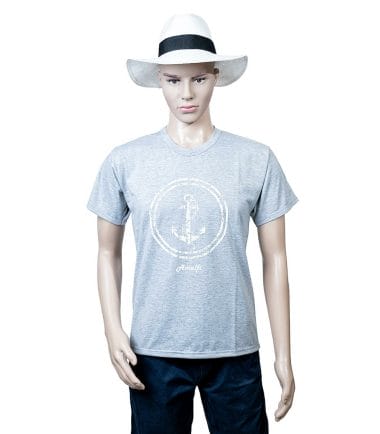 Questa T-shirt adulto uomo grigio melange in cotone 100% con stampa centrale cerchio e ancora è stata realizzata con un effetto che fa sembrare il disegno leggermente consumato